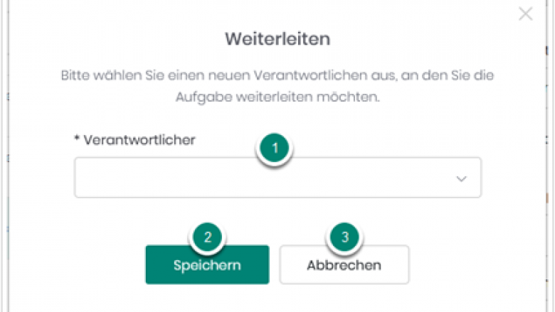 3 Schaltfläche Abbrechen Mit der Schaltfläche „Abbrechen“ wird die Weiterleitung der betroffenen Aufgabe abgebrochen und dieser Dialog wieder geschlossen.