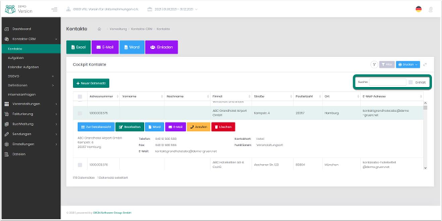 Unterhalb des Menübandes kann außerdem auch das Suchfeld zur Freitext-Filterung der Fachobjekte verwendet werden.