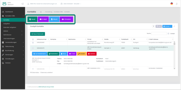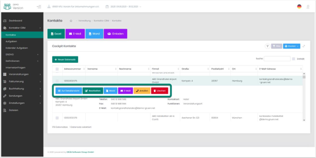 Sämtliche Schaltflächen unterhalb des Menübandes (z.B. in der Akkordeon-Ansicht) sind als Operationen mit einzelnen Datensätzen zu verstehen.