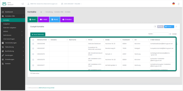 Die Cockpits folgen gestalterisch ebenso wie die Dashboards einem eigenen Schema und erfüllen den Zweck Fachobjekte tabellarisch darzustellen.