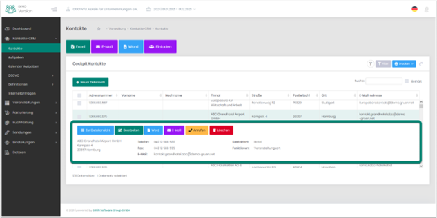 Die aufgelisteten Datensätze werden in der Regel im sogenannten „eBrowse“ des jeweiligen Cockpits dargestellt und können per Mausklick aufgeklappt werden, so dass weitere Detailinformationen zu dem ausgewählten Datensatz im sogenannten „Akkordeon“ (bzw. in der Akkordeon-Ansicht) angezeigt werden.