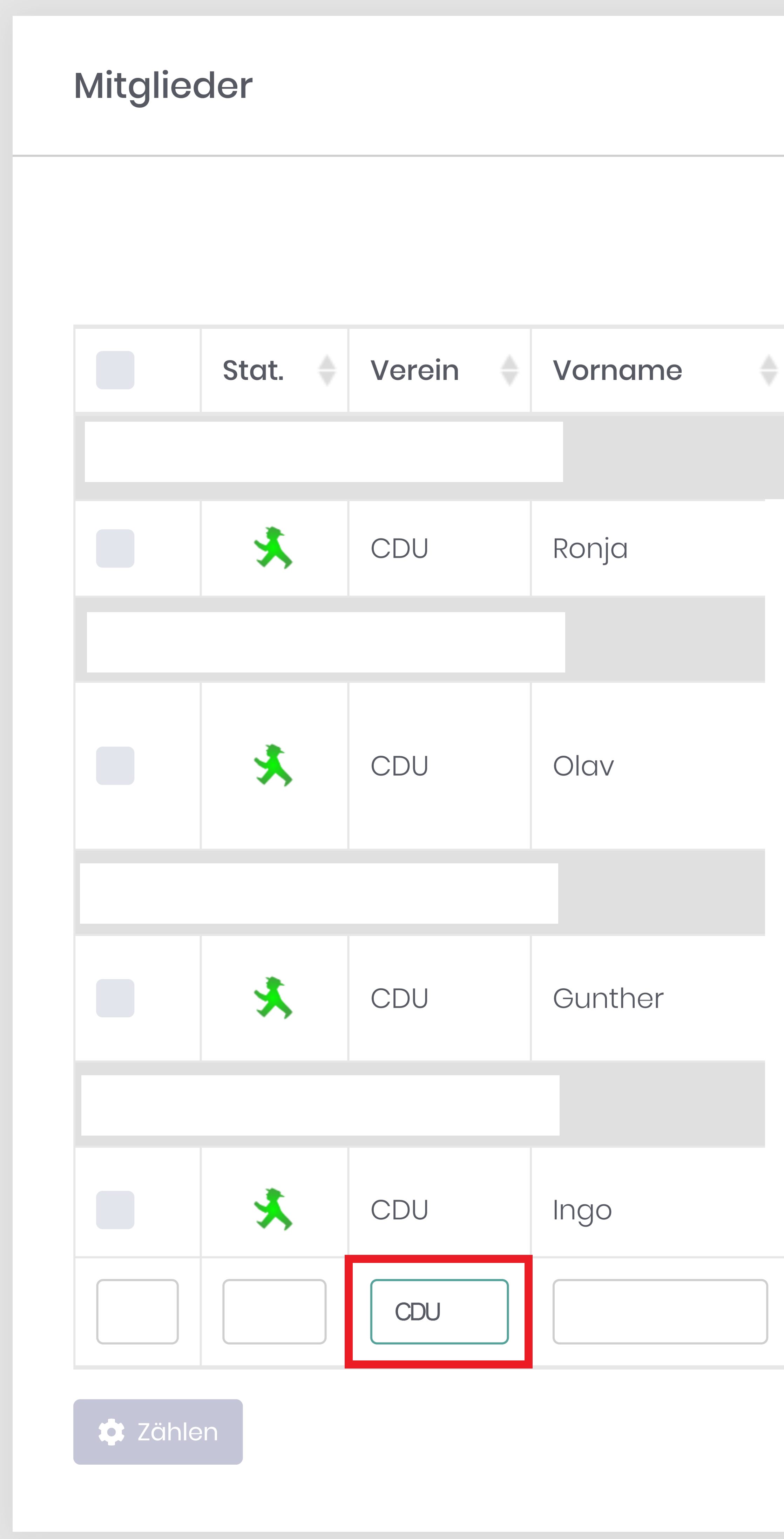Wenn Sie sich in der kumulierten Ansicht befinden, können Sie mit dem selbigen Funktionsschlüssel die Vereinigung CDU selektieren. Hierfür müssen Sie im Spaltenfilter bei angezeigtem Selektionsergebnis zusätzlich „CDU“ filtern: