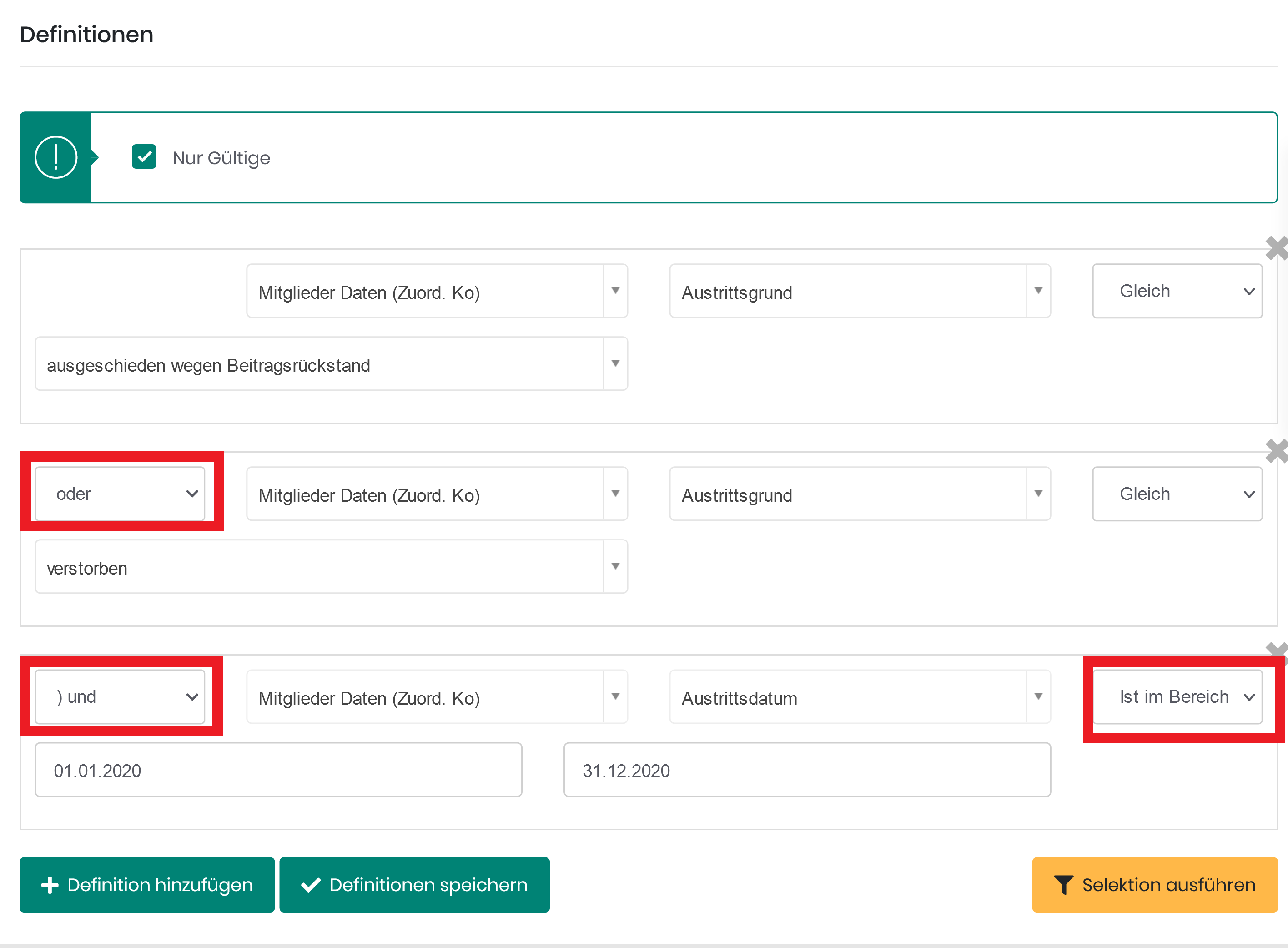Selektion mehrere Austrittsgründe in einem Datumsbereich