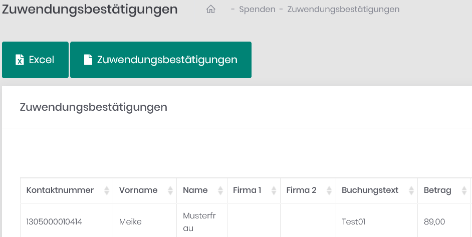 Auf dieser Seite können Sie die gebuchten Spenden sehen und Zuwendungsbestätigungen erstellen.